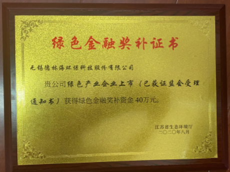 喜訊:我司榮獲江蘇省生態(tài)環(huán)境廳綠色金融獎補資金