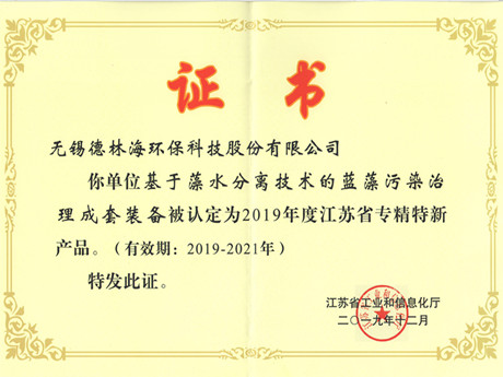 喜訊:我司的“基于藻水分離技術的藍藻污染治理成套裝備”入選江蘇省專精特新產(chǎn)品